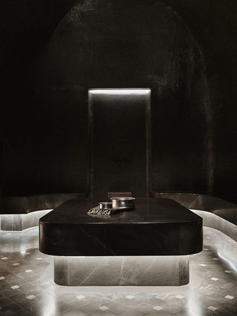 The vast Aman Spa is spread over three floors, with a 66-foot indoor pool, 10 treatment rooms, state-of-the art fitness facilities, and two spa houses. These private spa houses are a first for the city, rivaling the “cream of the crop” of luxury spas. This means spacious double-treatment rooms, and sauna and steam rooms with hot and cold plunge pools. There’s also an outdoor terrace with cabanas, daybeds, and a fireplace. The spa arguably has the most prime real estate of the entire Aman New York building.