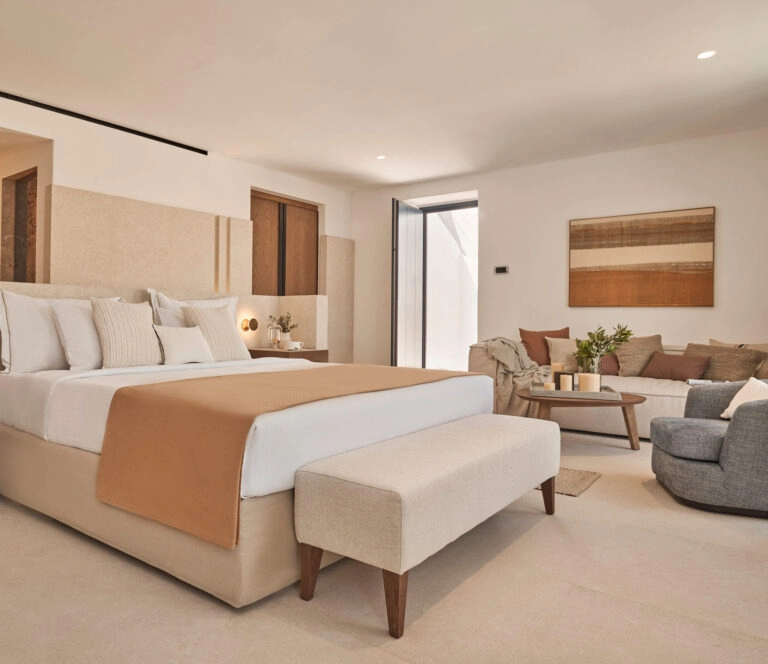 You know that Mykonos brings the party, which is always a good time. However, at its core, locals will tell you that dancing on tables at beach clubs is not the real Mykonos. So now there’s a new hotel, that wants to introduce you to the whole other side, figuratively and literally. Cali Mykonos is a boutique hotel in the tranquil coastal village of Kalafatis. While there are nice hotels on island, this one brings a new take on luxury. First, it’s family-owned, so the service has that extra special care.