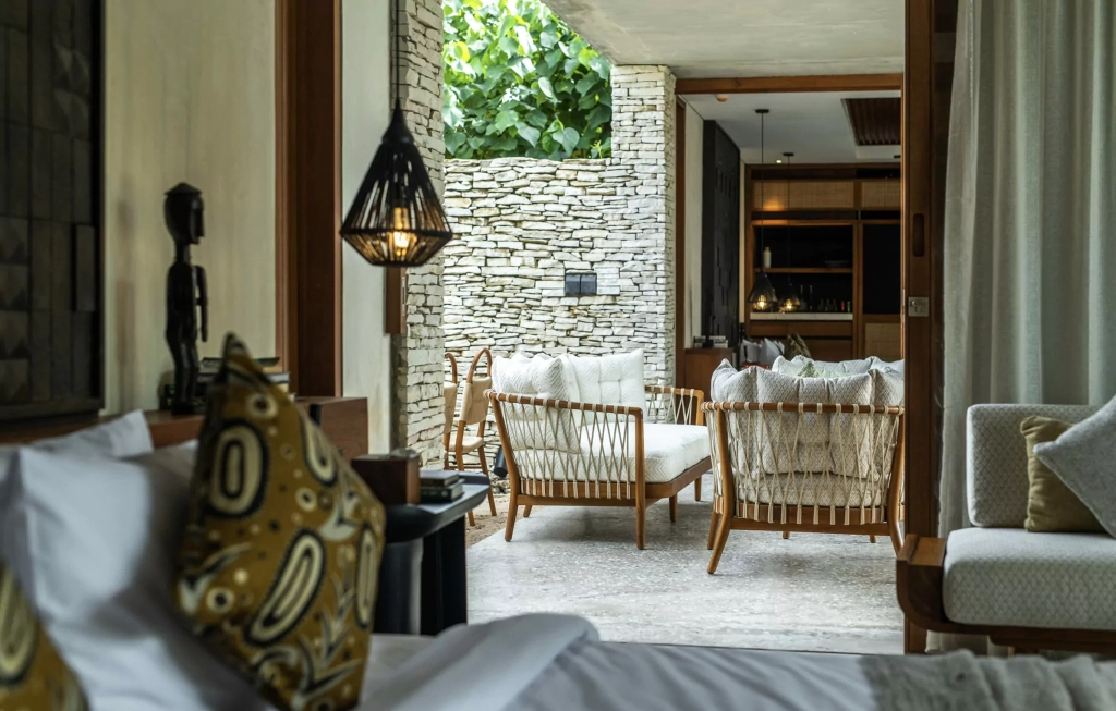 Cap Karoso boasts 44 rooms and 20 villas are inspired by local art and craftsmanship. Since the color scheme is all teak wood, bamboo and terazzo (plus, carved walls inspired by Sumbanese ikats), you just feel one with the earth. Many of the rooms and villas include private decks or gardens, open-air bathtubs, and custom furnishings.
