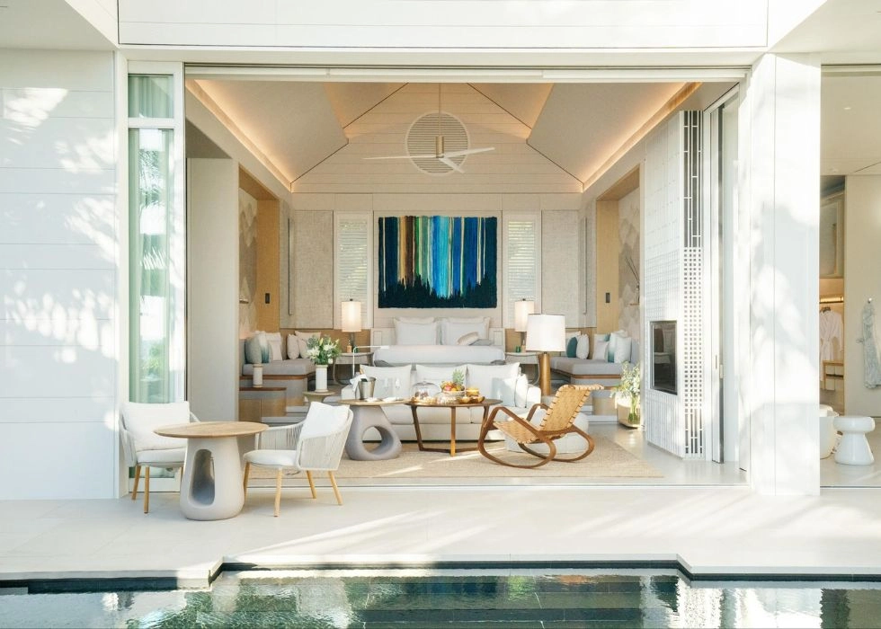 Each villa has a tub, shower, dressing room, and the Jungle Chic signature perfume wafting through its doors. A coveted artwork by a front-runner in the global art scene, Joël Andrianomearisoa, hangs on each villa’s wall, with each textile piece unique. The indoor-outdoor open concept makes the already expansive Creole-style homes seem even bigger, so regardless of there being 52 villas, there’s still plenty of room to spread out without bumping into the neighbors. You could easily throw a successful soiree in your outdoor space alone, featuring a private garden, 42 square-foot pool, outdoor shower, terrace, and pergola.