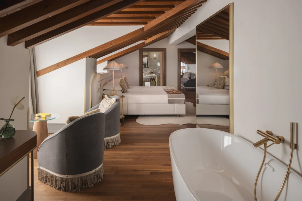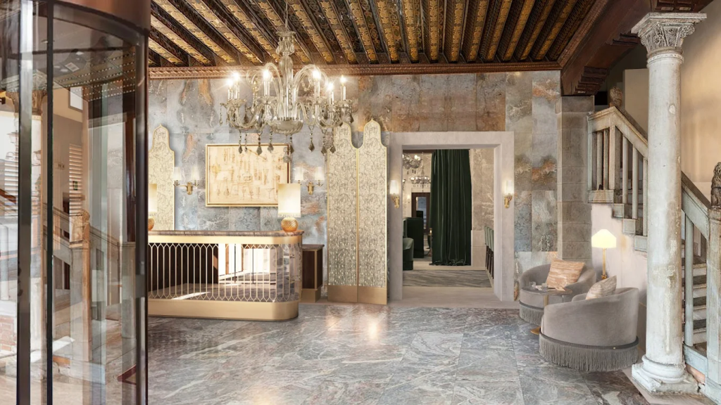 Starhotels frames the project as a “new era of Venetian luxury,” shaped by local materials and a restrained design language. Gothic arches and restored terrazzo remain, but the renovation adds modern lines and a calmer, contemporary rhythm.
