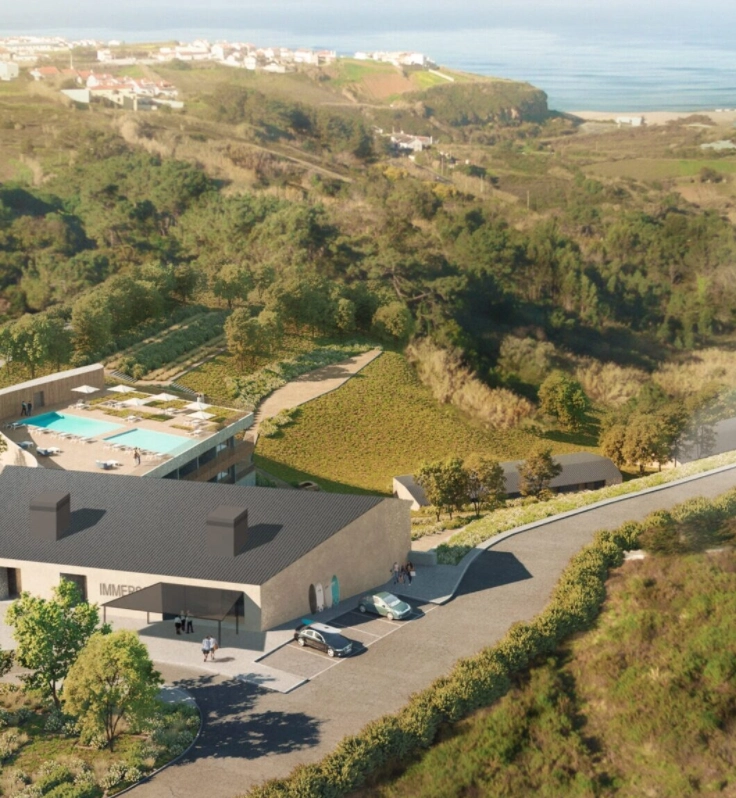 The project brought together architect Tiago Silva Dias, designer Barbara Neto, and landscape architect Margarida Quelhas with the goal to create an estate that embraces its surroundings. Within this natural setting, Immerso focuses on sustainability, with a genuine appreciation for the habitats and ecosystems that make the area so unspoiled and so uniquely Portugal. Most of the furniture and decorations are made in Portugal, often by artisans from the community. This approach is taken in all areas of the experience. Careful consideration is made to reduce carbon emissions, prohibit plastics, and use locally grown products.
