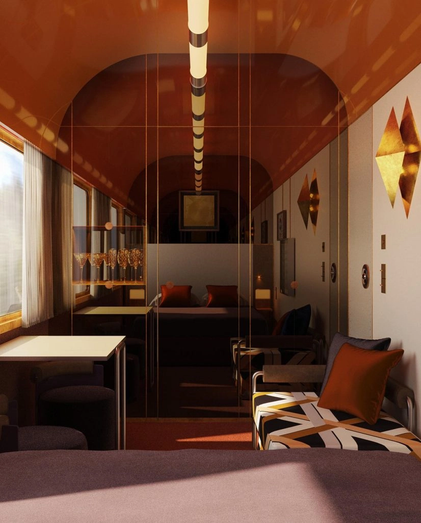 Inspired by Fellini’s iconic film La Dolce Vita, the train channels the spirit and artistic flare of 1960s Europe. With nine carriages all designed by design firm Dimorestudio, you get to travel in a moving art piece. You can choose between a deluxe cabin or suite cabin, the difference coming down to whether you care about a sofa bed, or having the full master bedroom. Both options have ensuite bathrooms, and if you’re craving an Italian cheese platter while in bed, room service.