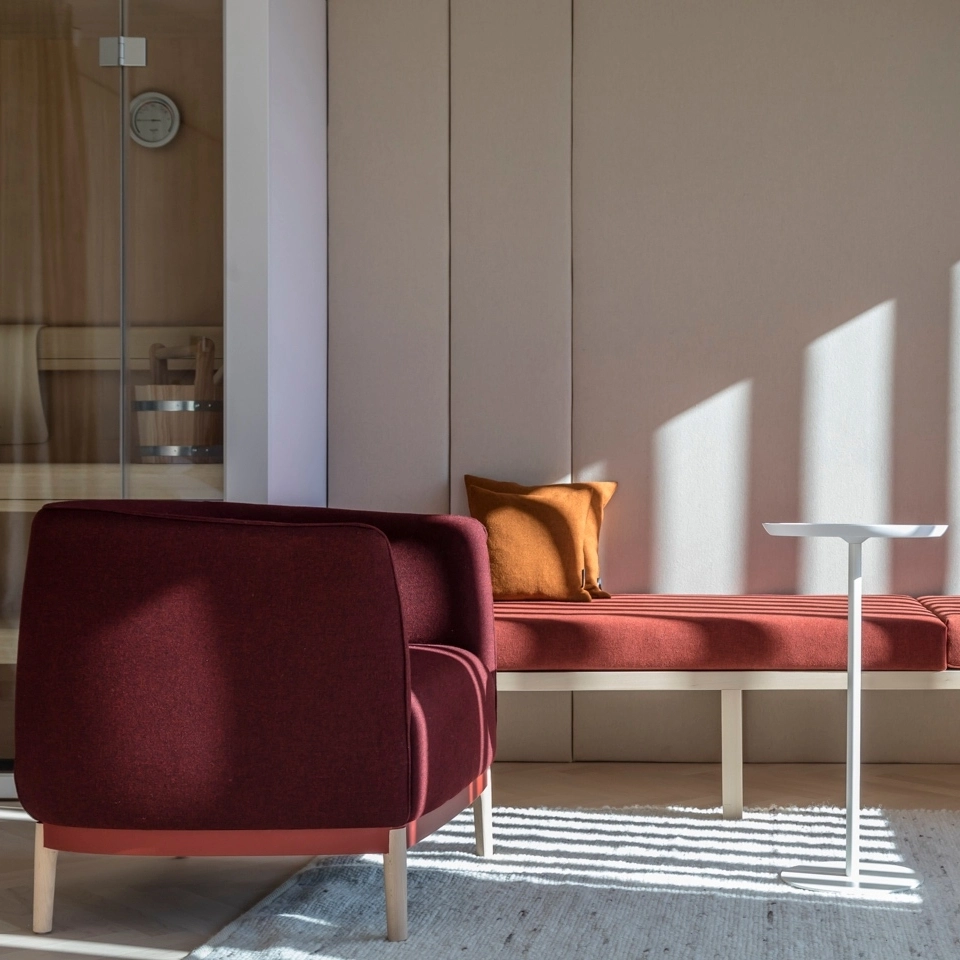 For guests who prefer their relaxation Scandinavian-style, the Spa Suite offers an in-room sauna. Not to be outdone, Deluxe rooms have wood-burning fireplaces. The Superior 2nd Floor Suite extends the theme of the wooden fishbone flooring up the walls. Reflecting the goal of simple, refined luxury at the Miramonti Boutique hotel, this creates a light and airy room.