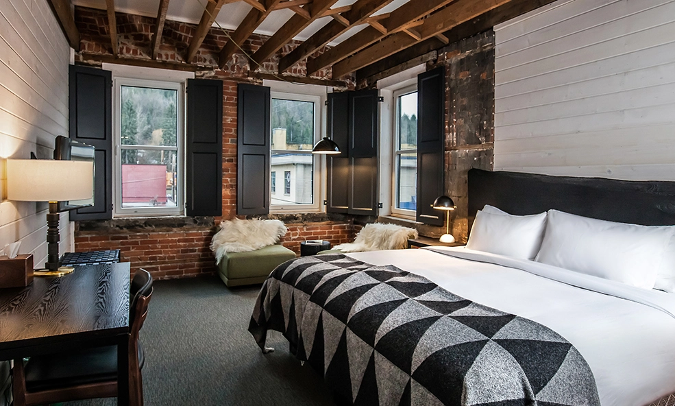 The lodge was built in 1911 and sits right in the center of town. The 9 intimate rooms offer offer guests a warm, laid-back yet luxurious place to unwind after a day of intense skiing. Amenities include a top of the line sauna, a rooftop lounge, and a hot tub.