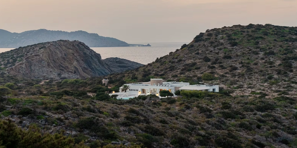 This contemporary villa is set on the slopes of Cala Llamp overlooking the sea. It has an expansive terrace with an infinity pool perfect for watching sunsets. The neutral tones and wooden beams give this villa a relaxed and distinctly Mediterranean feel. Its lower floor includes a fitness area, sauna, and a well-stocked wine cellar. Each of its five bedrooms has sea views and there are also six bathrooms on the property. The average price per week is 17,500 euros a week .