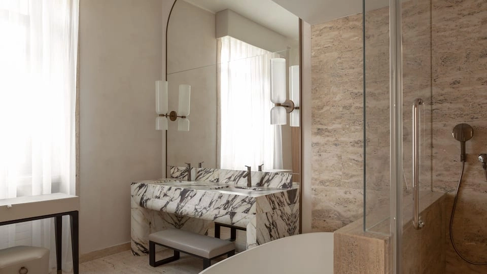 Both the color palette and overall design reference the Duomo of Milan, further solidifying the property’s landmark status. The Park Hyatt Milan has 106 guest rooms and 25 suites, while select rooms offer stunning views of the city. The rooms reflect the theme of the hotel’s design: airy, elegant, and comfortable.