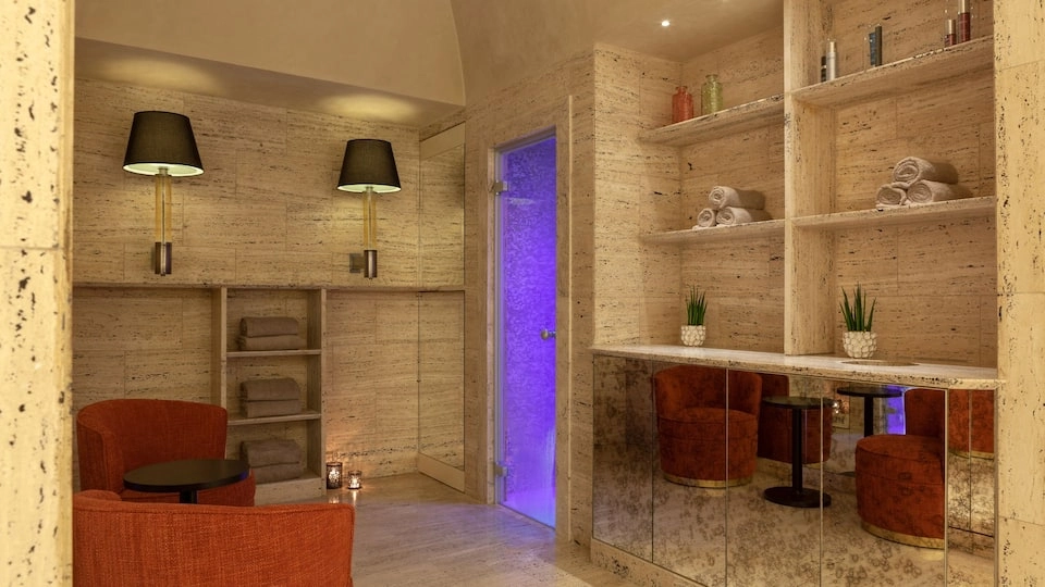 In addition to the hotel’s new flourishes, its classic amenities are back and better than ever. For example, the AQVAM Spa has reopened. The renovated space features a Turkish bath, multifunctional showers, and a gold mosaic-clad jacuzzi bath. Stop in for unique treatments from the 111SKIN treatment line. Similarly, the gym is now outfitted with the latest generation of Technogym equipment.