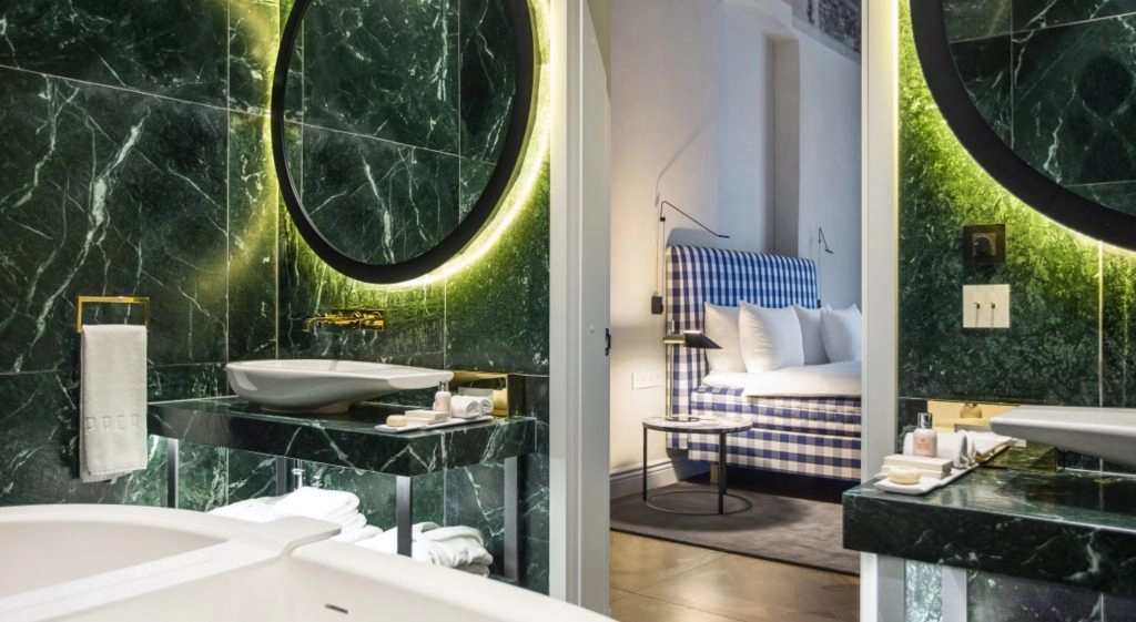One might expect a super high-quality spa to be in Lithuania. Hotel Pacai in Vilnius has just that. And beyond the incredible hammam, the building’s historic origins bring one-of-a-kind design to the rooms. As the building has housed dignitaries for centuries, rich details like marbled floors, and frescos proliferate, even inside the rooms.
