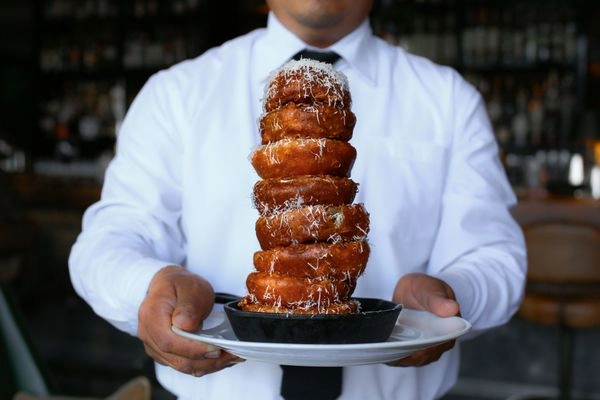 The cinnamon roll cart is the brunch’s unofficial mascot — a towering, gooey, oversized pastry delivered with the kind of ceremony usually reserved for birthdays or proposals. It’s decadent, dramatic, and impossible to refuse. The cart has gone viral more than once, and for good reason: it’s brunch theatre, and Baltaire knows exactly what it’s doing.