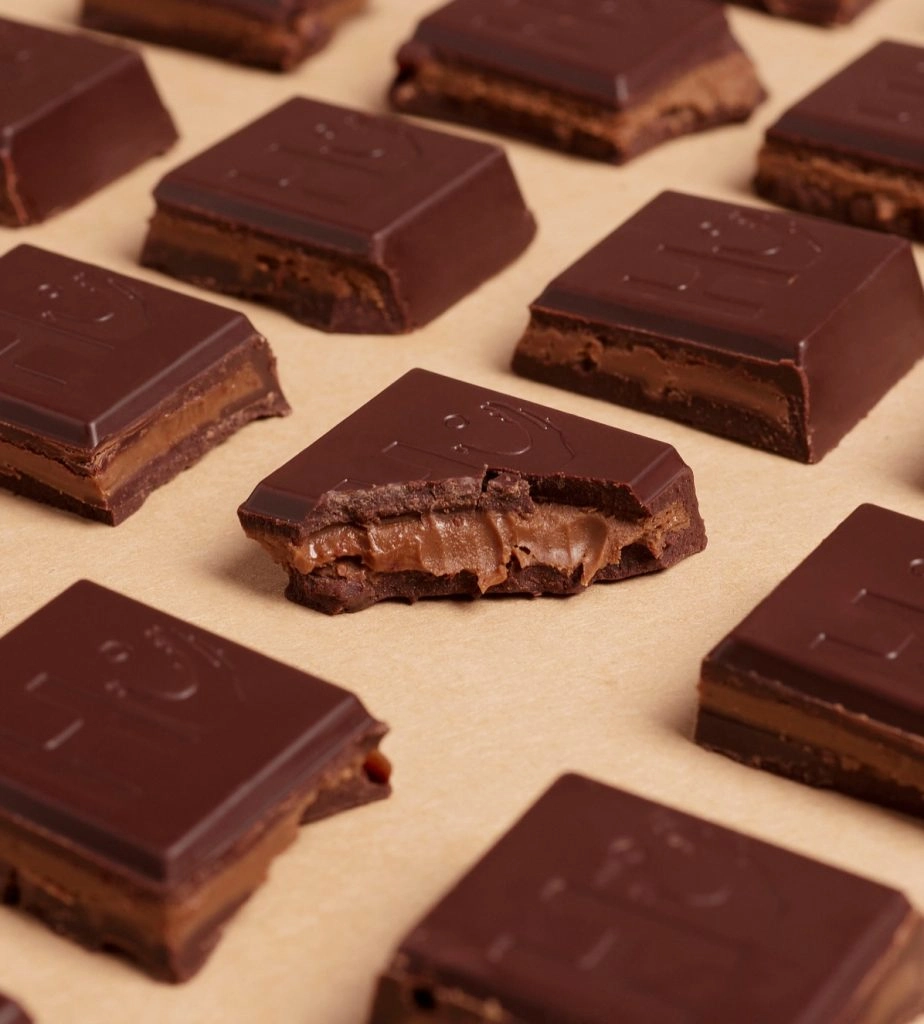 Hu represents the epitome of clean eating. The chocolate brand is a project created by three siblings – also the co-founders of Hu Kitchen. Hu Kitchen is where their clean eating philosophy began with the “Get Back To (Hu) man” slogan. Hu is for those of you who love rich and decadent chocolates. Some bars include flavors like hazelnut butter, almond crunch, and dark chocolate gems. There is no refined or cane sugar. Instead, the brand uses organic, unrefined Fair Trade coconut sugar. The bar base consists of cacao, unrefined coconut sugar, and cocoa butter; you won’t find any complicated chemical-sounding ingredients in these. Many of their products do contain nuts, and although they clean their equipment before batching nut-free treats, it is something to keep in mind if you have a severe allergy.