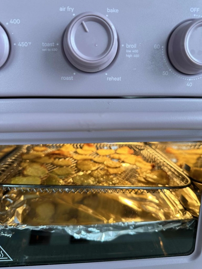 It will be much healthier if you use an air fryer, though it’s not quite the same as frying your potatoes in oil. However, if a fried potato means that you can’t partake in potato chips, then an air fryer is a nice second alternative. It’s harder to have the same even golden crunch on an air-fried potato, but the air fryer will crisp those right up. If you choose to air fry your potatoes, spray a little cooking spray on them then pop them in the fryer for about 15 minutes at 375 degrees Fahrenheit.
