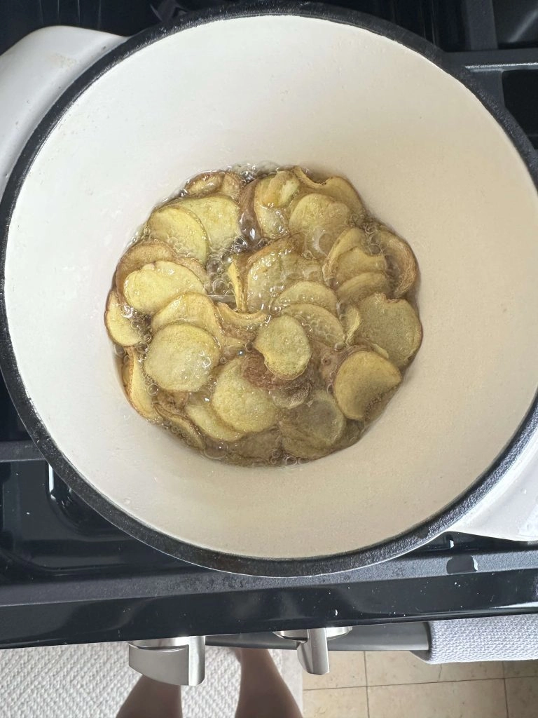 Q: Do you fry or air fry the potatoes in this homemade potato chip recipe?