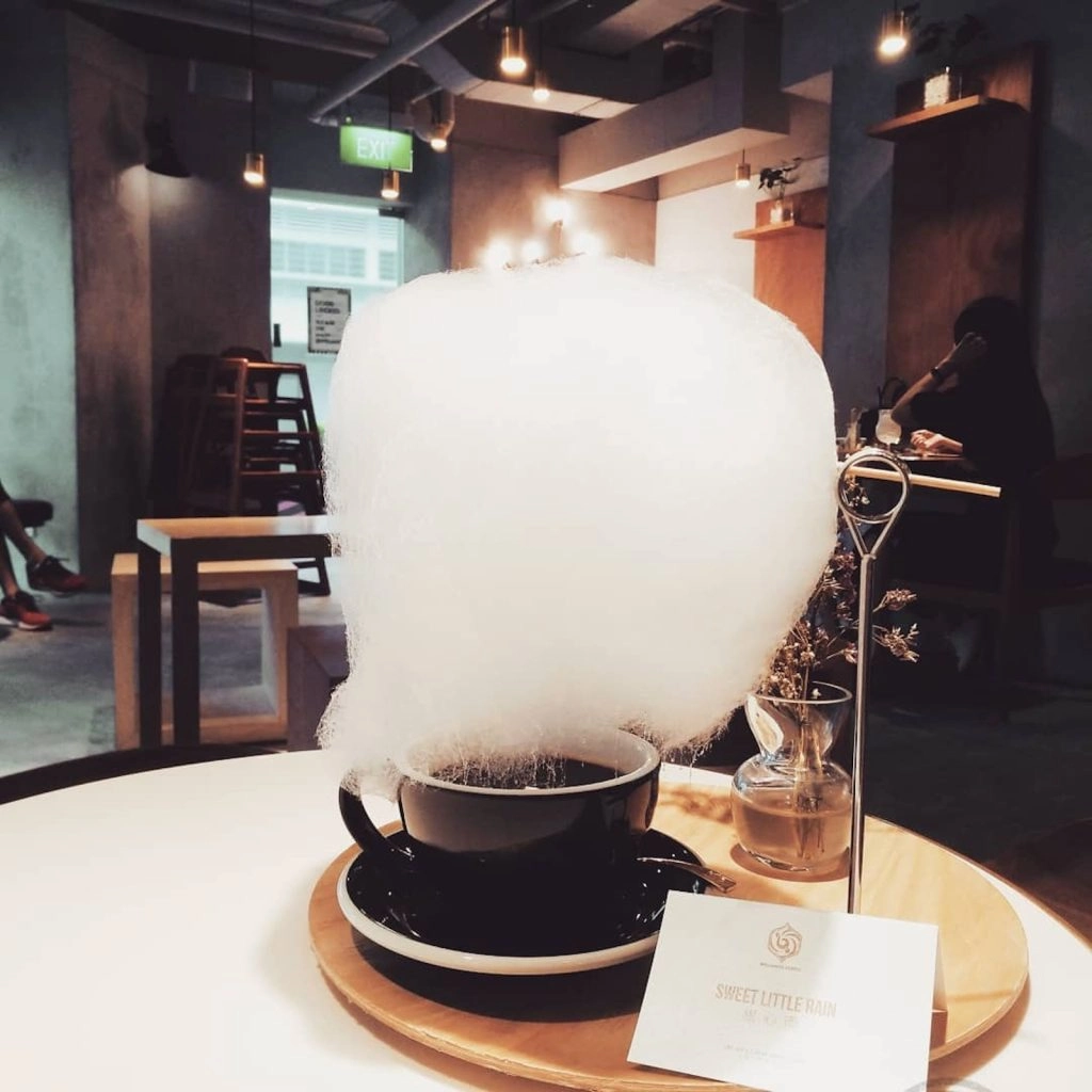 The aptly named Sweet Little Rain is a simple but ingenious concept. It consists of a large, hot cup of Americano over which a white and delicate ball of cotton candy is suspended, much like a rain cloud. The steam from the Americano melts the cotton candy, which drips gently into the coffee below. The result is a strong and sweet cup of a joe – and a show (albeit a very slow-moving one). Needless to say, it makes for great Instagram posts or TikToks.