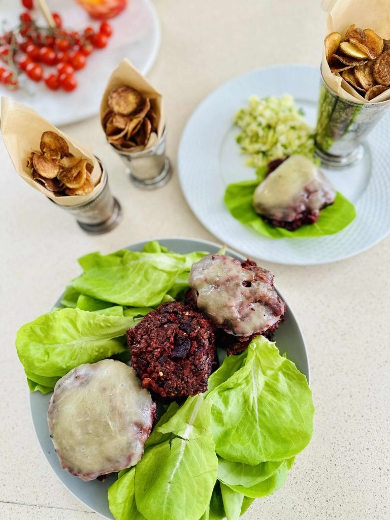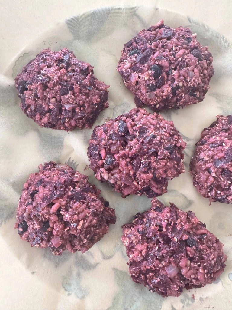 I looked online for the Hillstone veggie burger recipe, and there was a gamut of interpretations. However, the core of this burger is the beets, oats, brown rice, and a hint of barbecue sauce. Even writing about it makes me want to take a break now to serve myself a burger. The recipe is easy, but it does take some time. I like to make some extra burgers too that you can freeze or eat throughout the week. It makes it all worthwhile to have these on hand for a high-protein, healthy meal anytime.