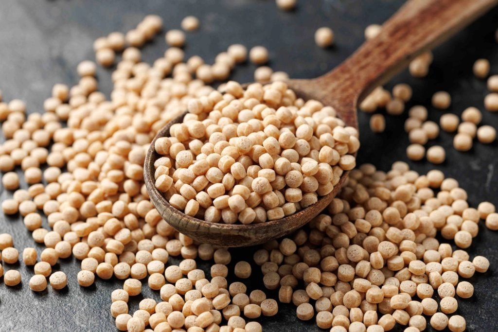 In a medium saucepan, heat 1 teaspoon of olive oil over medium heat. Add the Israeli couscous and toast for 2-3 minutes, stirring frequently until the couscous is light golden brown. Mix with the vegetable broth or water and a pinch of salt. Let the mixture come to a boil. Once the mixture boils, reduce the heat to low and let it simmer for about 10 minutes until the water is absorbed. The couscous will achieve a tender texture. Add a drizzle of olive oil so the couscous doesn’t stick, and set aside to cool.