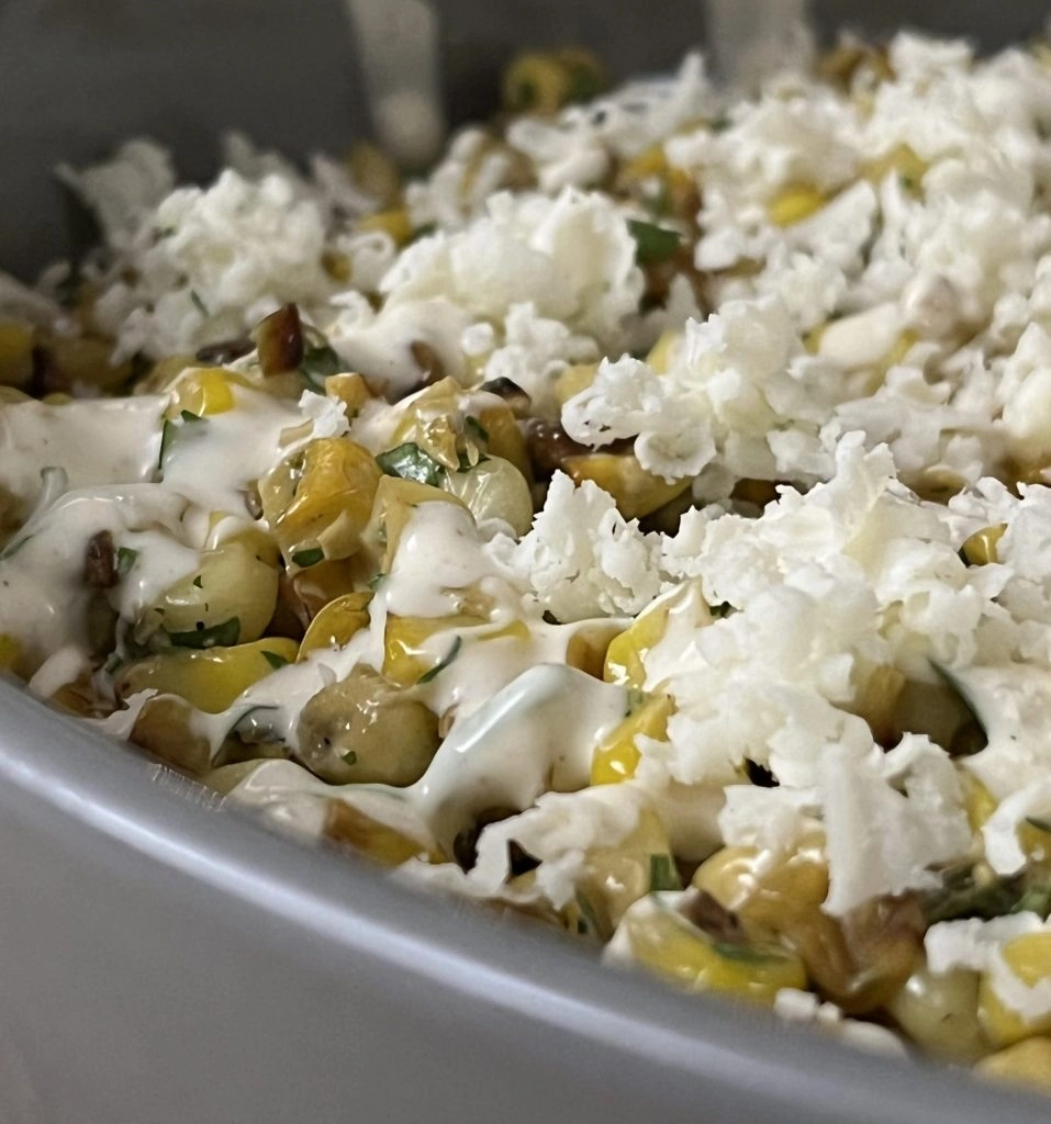 Every host needs a personal cookout philosophy. Ours is a simple equation of side dishes: you need one salad, one vegetable dish, and one dip. But we’re quick to admit that except for the basics of guac and hummus, dips can be tricky. Sure, you can throw a tub of sour cream, some mix-ins and some cheese into a bowl and call it good, but where’s the fun in that? This Mexican street corn dip is our ideal elevated side dish. Adding crema in the elote-inspired sauce gives it a creamy and decadent taste, but keeps it light enough for second helpings…and thirds.