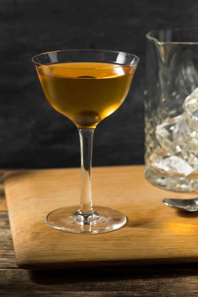 Strain the mixture into a chilled cocktail glass. You can use a martini glass or a rocks glass, depending on your preference. Garnish your Calvados Manhattan with a twist of orange peel.