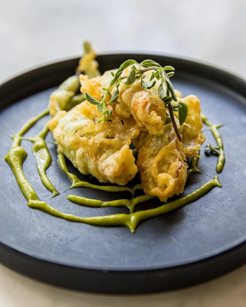 The dishes are made to share, especially if you want to order the truffle pasta, or a pizza made in the wood-burning oven. The Culina team makes one of the best fiori di zucca fritti, zucchini flowers which are stuffed with fresh ricotta, pecorino, oregano, and garnished with a basil cream. It’s a decadent version, with crisp breading that’s deep-fried to perfection. Not great for the waistline perhaps, but this fried zucchini blossoms recipe is worth the indulgence.