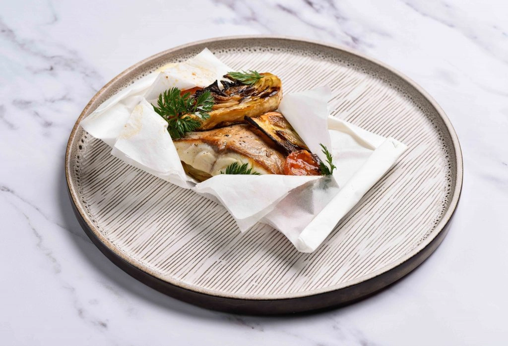 Cooking fish “en papillote”—in parchment paper—is a chef’s trick for keeping fish moist while incorporating layers of flavors. This method is especially popular in the South of France. This sea bass en papillote recipe will take you right back to La Reserve in Ramatuelle. It also provides a serving presentation full of surprises. As your guests open up the package, they will be delighted by both the approach and the delicious-smelling steam that floats up. That’s even before they taste your sea bass en papillote and all the accompaniments. It’s actually those accompaniments that give flavor to the fish and make your home smell like heaven.
