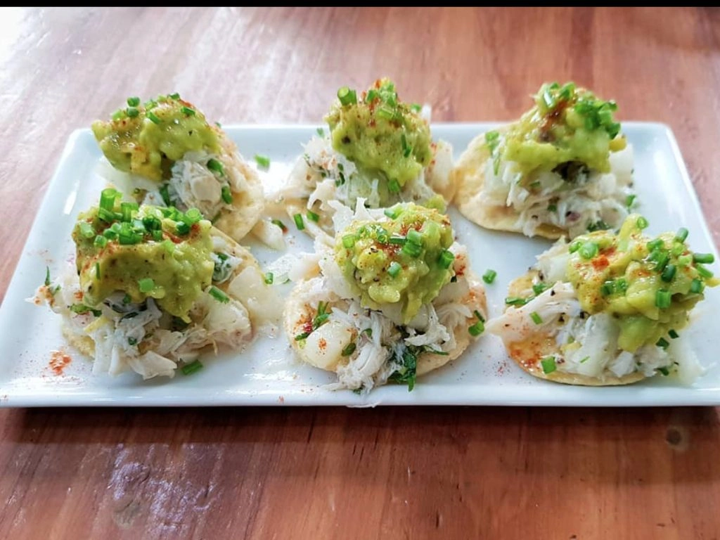 On a large oven-safe platter or baking sheet lined with parchment paper, arrange a tortilla chips side by side on the baking sheet. Once your first baking sheet is full, repeat on a second and third baking sheet. Place about a tablespoon of the homemade tomatillo sauce on each chip. Next, sprinkle half of the shredded cheese evenly over the chips. Now it’s time to spoon the crab mixture evenly over the chips. Cover with foil. Bake in your oven until the cheese is melted, about 8 minutes, taking off the foil the last 3 minutes. Once your nachos are warmed through, top each individual nacho with about a 1/2 tablespoon of the avocado mash and enjoy.