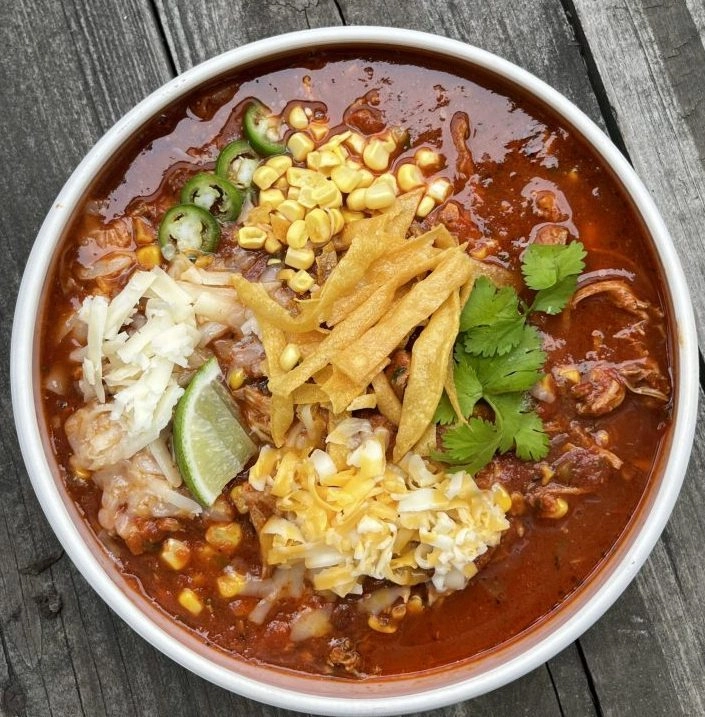 Layer your soup over the tortilla strips and cheese for extra-melty goodness.