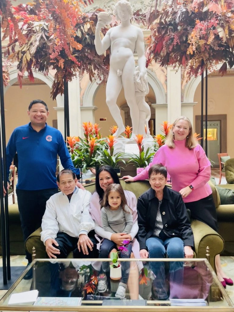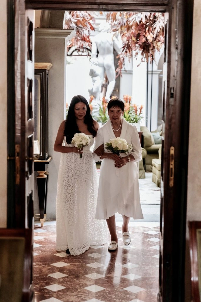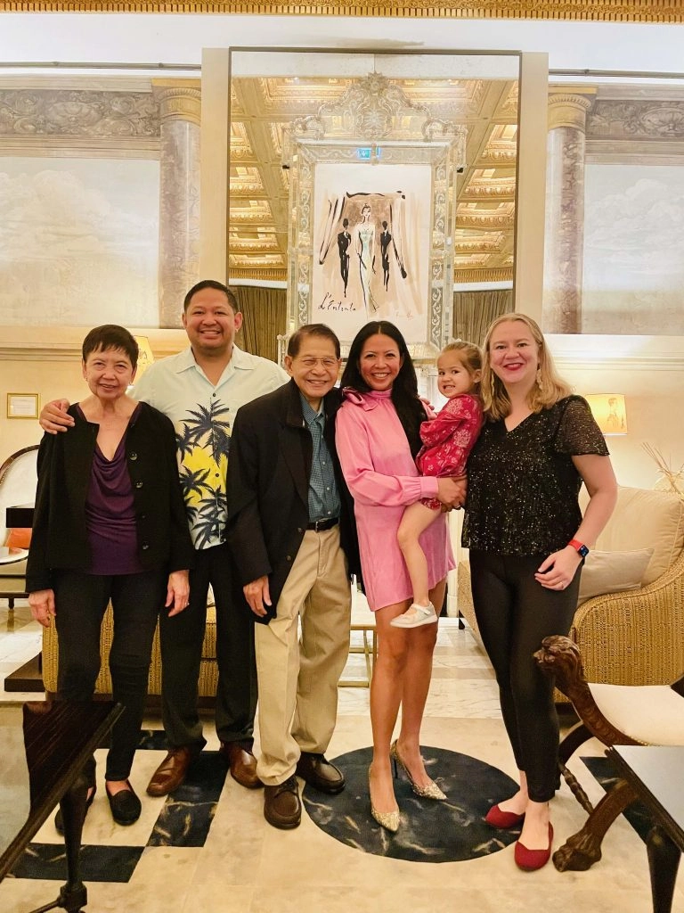 On the 50th-anniversary date of 11/11/22, my brother, my sister-in-law Neringa, and I arranged for my parents to renew their vows at the Four Seasons. My mother wore an old brooch from her best friend, a new wedding dress, borrowed shoes from me, and a blue ribbon in her bouquet. She was a beautiful, glowing bride at 81 years young. There was something profoundly touching to see two people who make it through 50 years of life together renew their vows. To our family’s relief, they re-upped for another 50.
