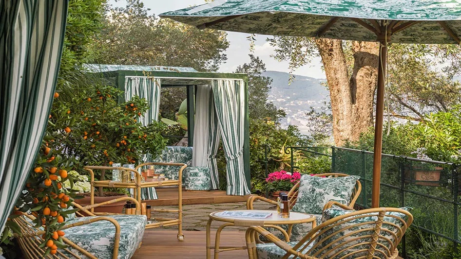 If your idea of total relaxation is an experience immersed in nature, the Dior spa has got you covered. And we don’t mean wilderness. We mean views of some of the best that Portofino has to offer, in style. Toîle de Jouy, a Dior signature, is the pattern of the hour. The Splendido gardens make for the perfect setting, with succulents at the forefront and mountains on the horizon.