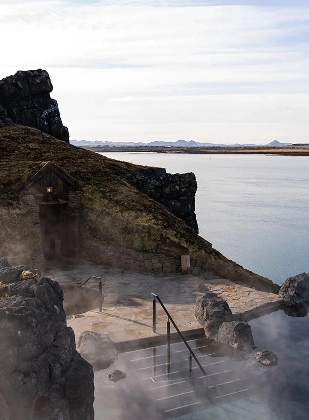From the second you walk in, it’s clear Sky Lagoon’s got its design game on lock. It was made for those dreamy, “I woke up like this” moments. Every detail of the Sky Lagoon is crafted to deliver both elegance and authenticity. Inspired by traditional Icelandic turf houses, the architecture harmonizes with its natural surroundings. The lighting is low-key (perfect) and the changing rooms feel VIP, with unreal views. It’s a space that’s equal parts intimate and awe-inspiring.