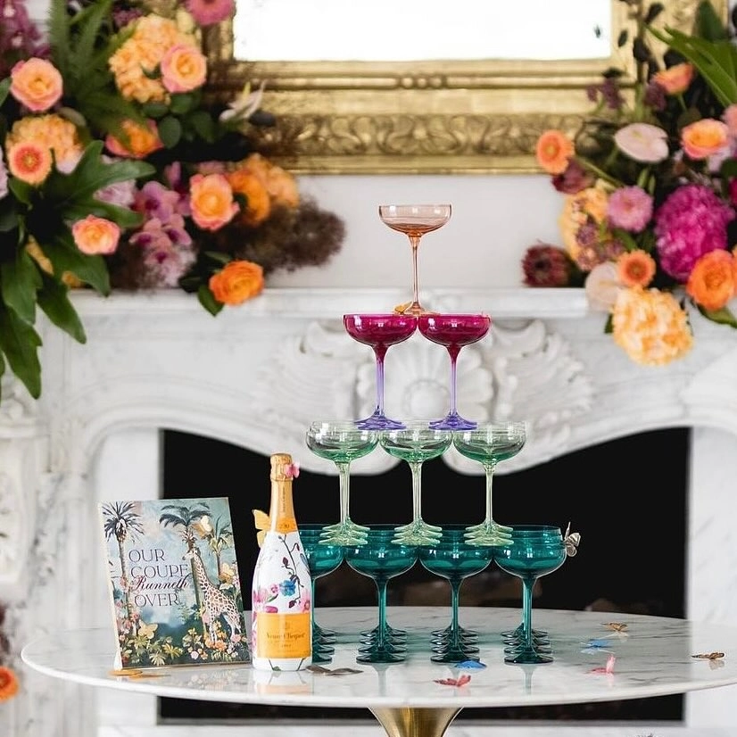 We fell in love with these glasses because of their bright colors, and the diversity of the collection. Estelle colored glassware comes in everything from tumblers, to champagne coupes and also cake stands. There is something about having a beautiful table set up when you have guests. Besides creating dishes that are inspired by travel, what you serve them in brings back an age of gracious entertaining.