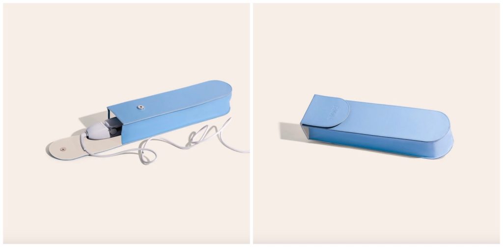 The Nori Press comes in a variety of colors: white, blue, navy, lavender, green, and pink. While you can purchase a travel case for your press (made of vegan leather and a heat protectant lining), the case is only available in blue.
