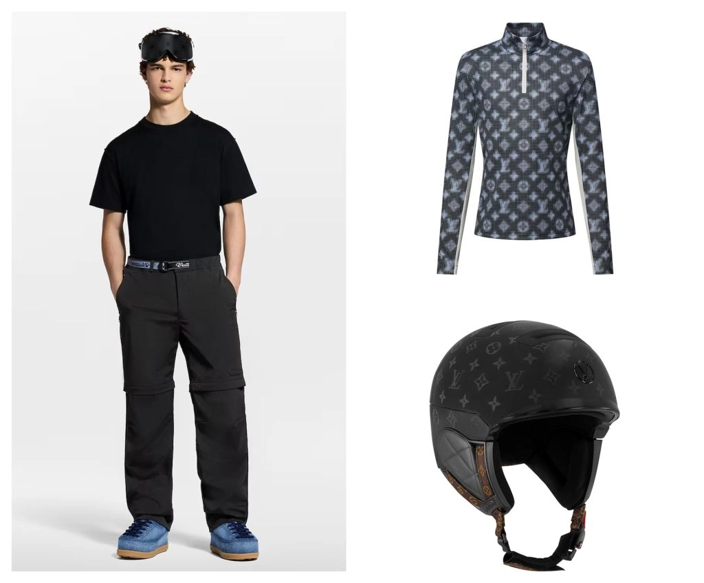 Even the brand’s ski helmet ($2,400), with its round shape, monogrammed exterior, and quilted leather details look stylish.