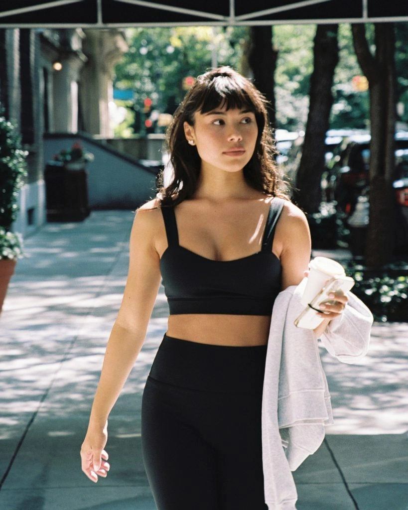 We don’t quite get the name, but they had us at scalloped edges — a signature look of Wiskii Active. We also like the diversity of colors in their workout line. Case in point: that deep orange they’re rocking this season. It’s enough to get you into a yoga class just to wear the clothes.
